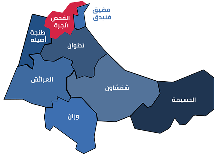 وستة أقاليم: الفحص أنجرة، تطوان، شفشاون، العرائش، وزان، والحسيمة.